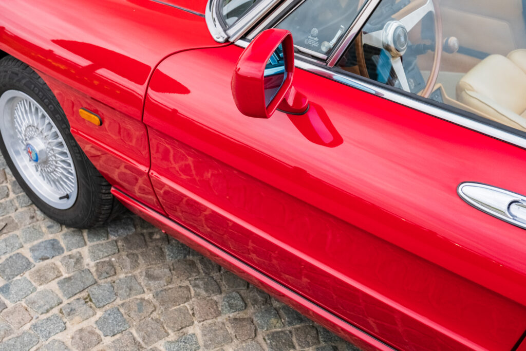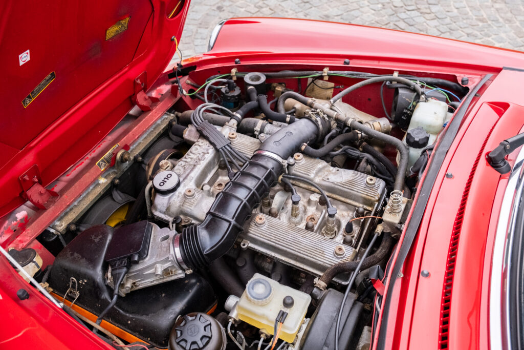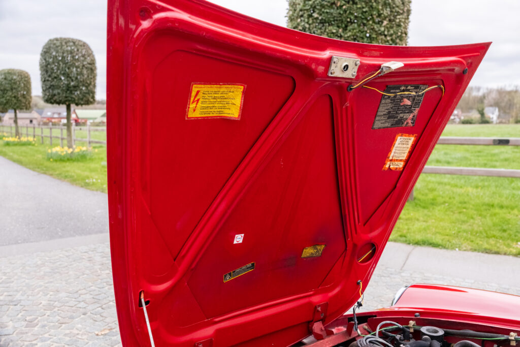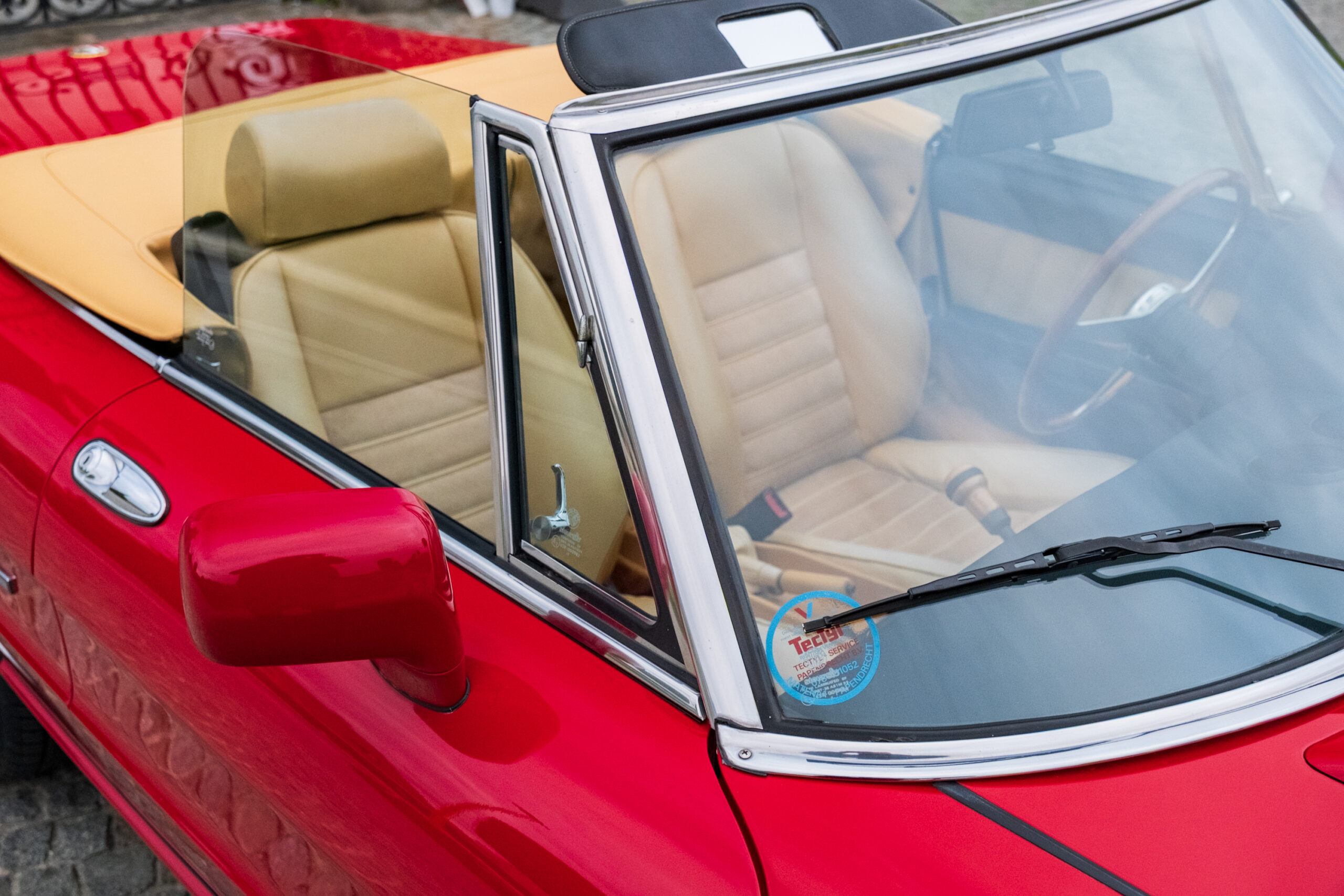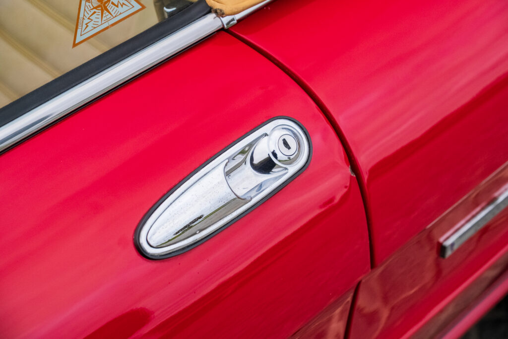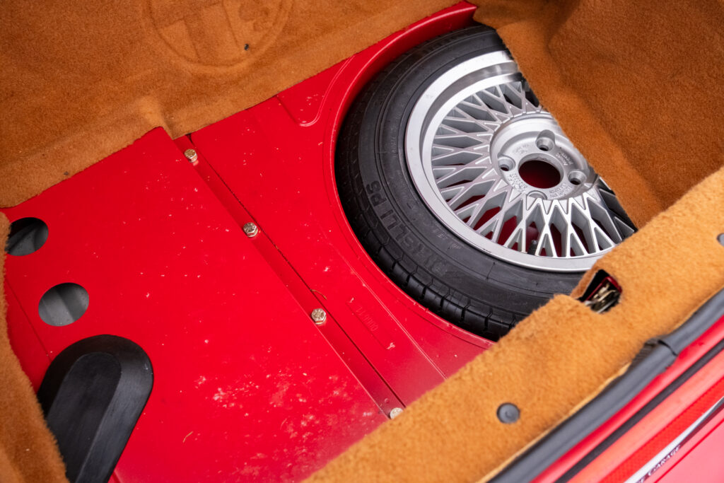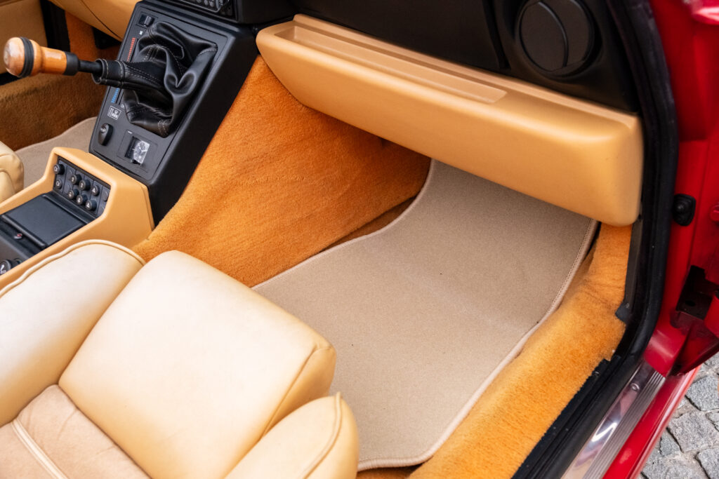 Deze wagen is uitgevoerd in het iconische Rosso Alfa 130 met een stijlvol beige interieur – een tijdloze en bijzonder elegante combinatie.