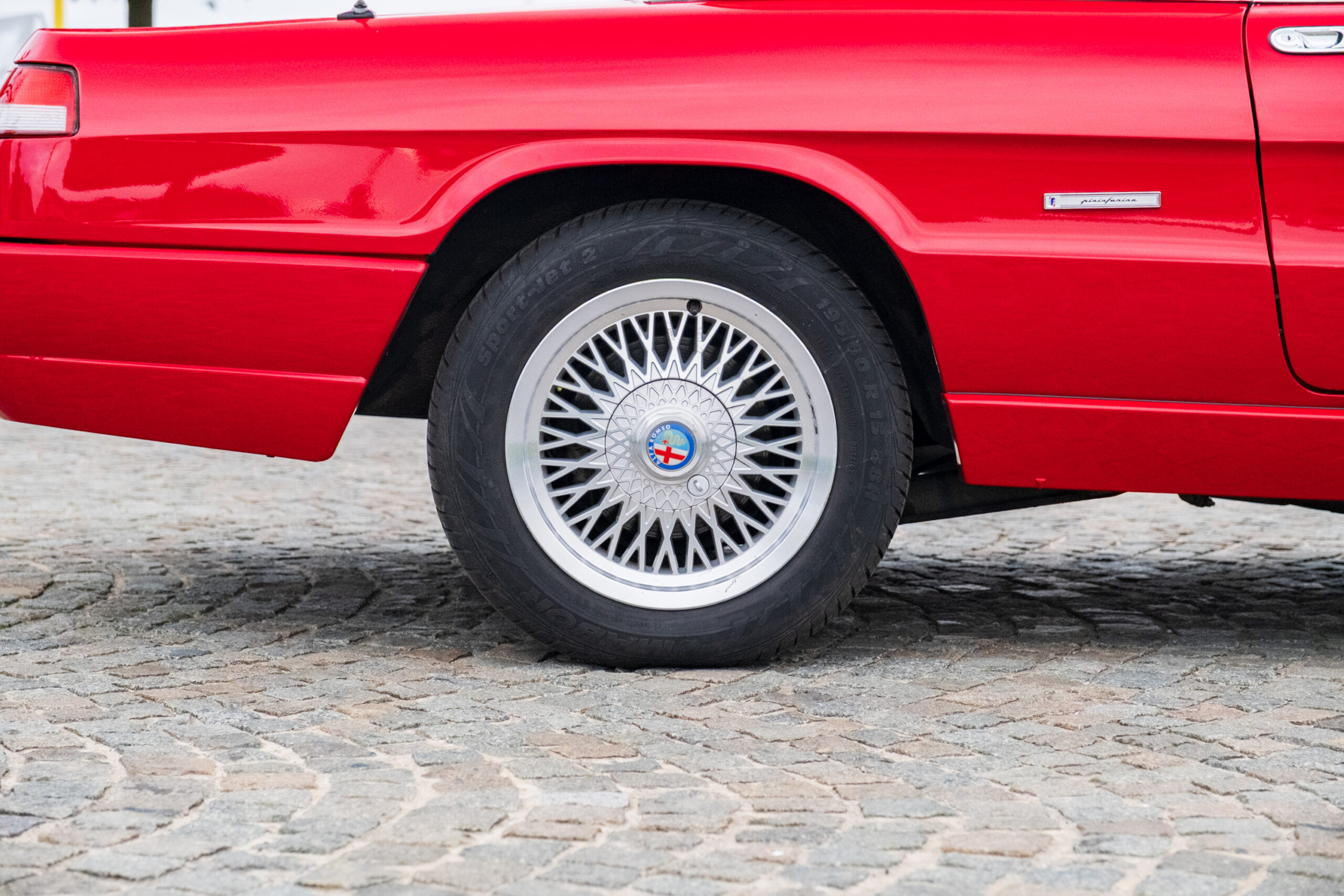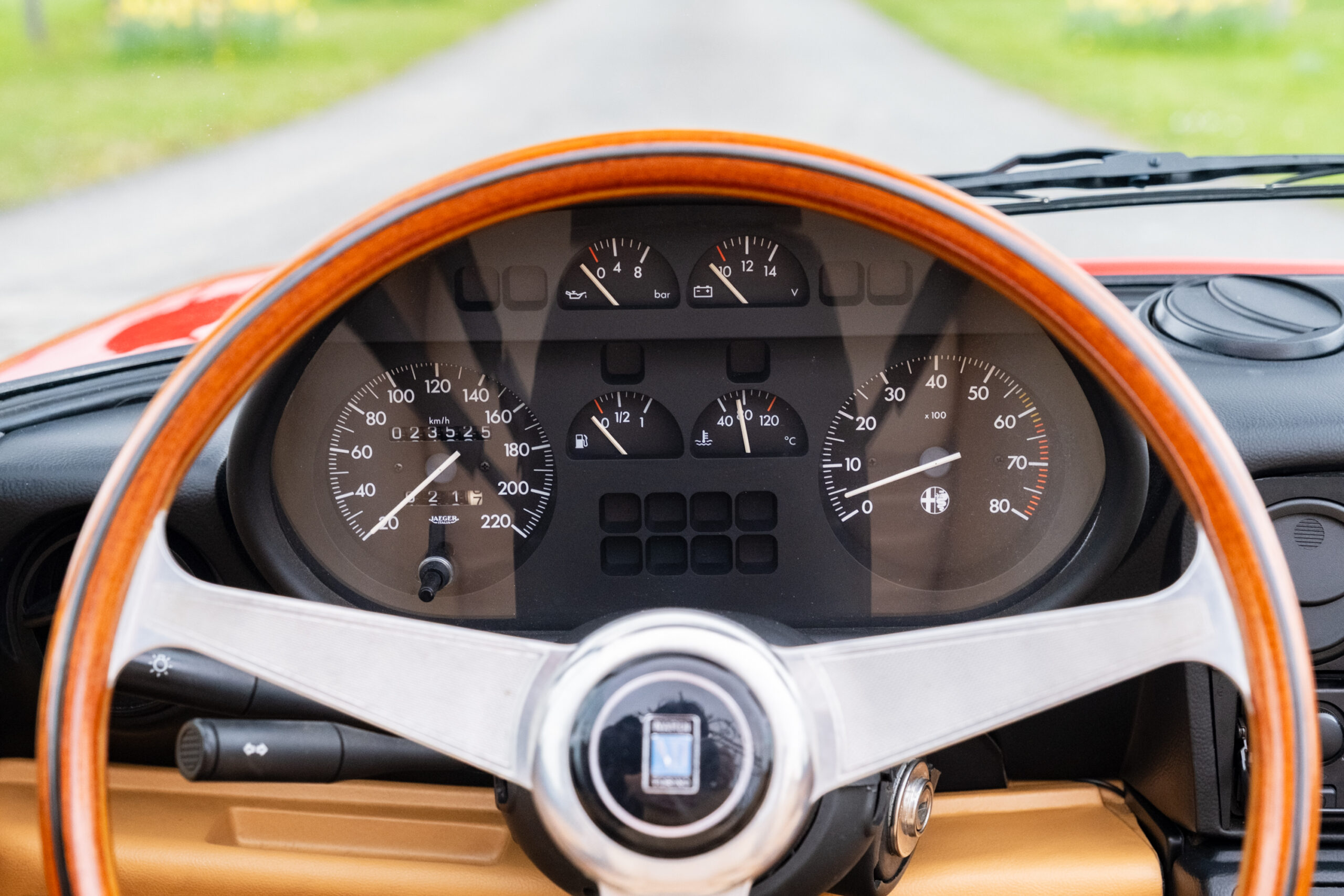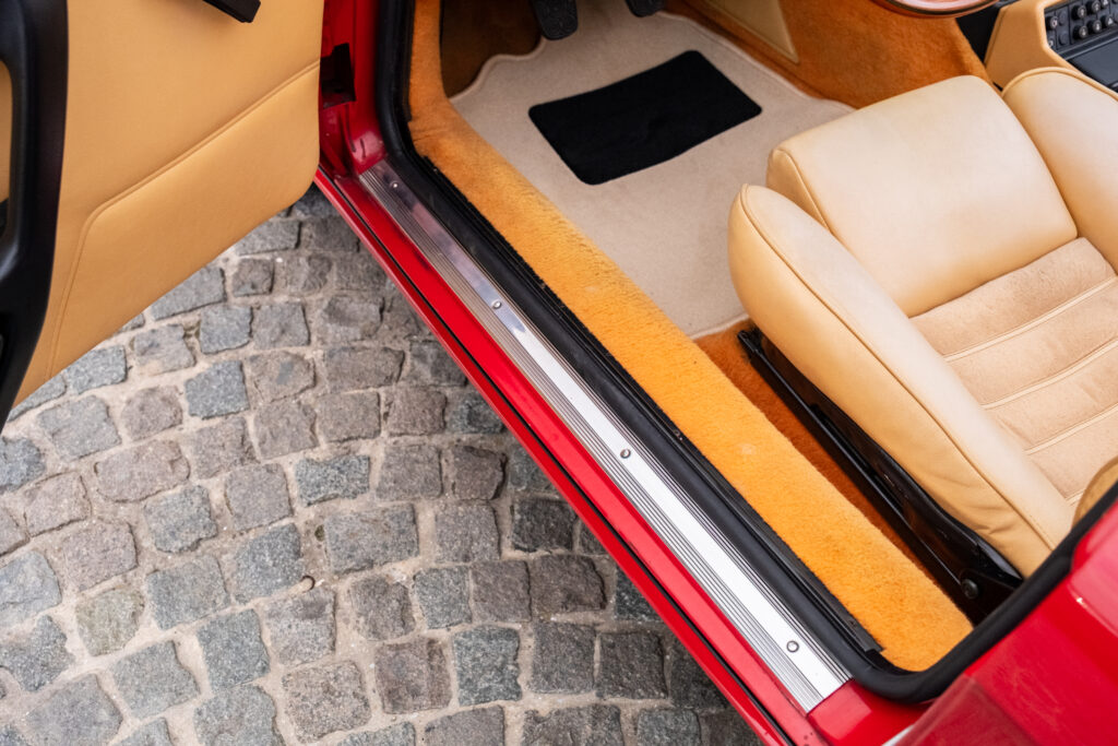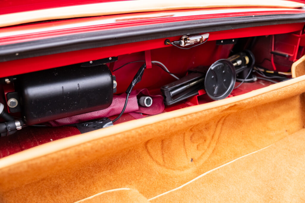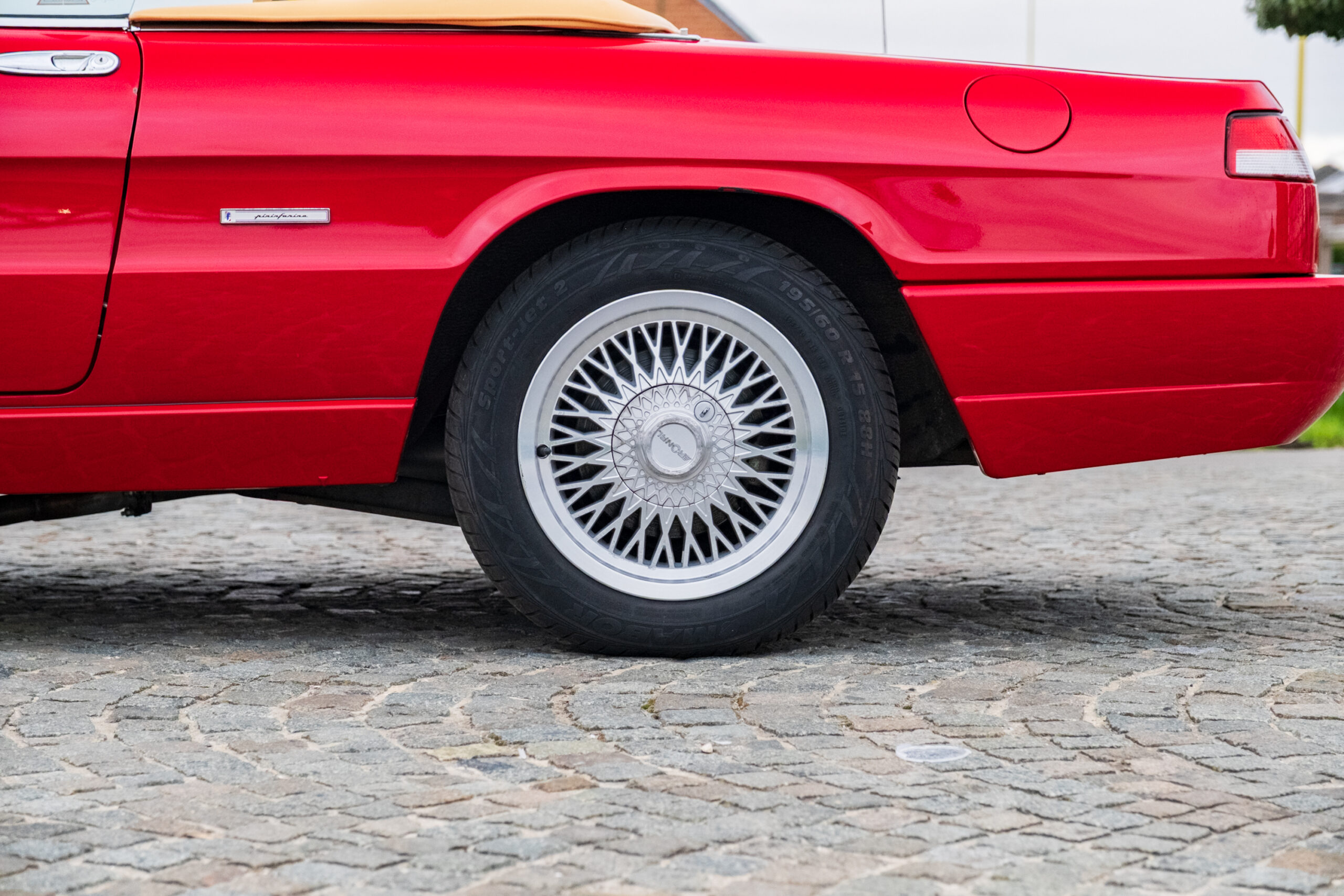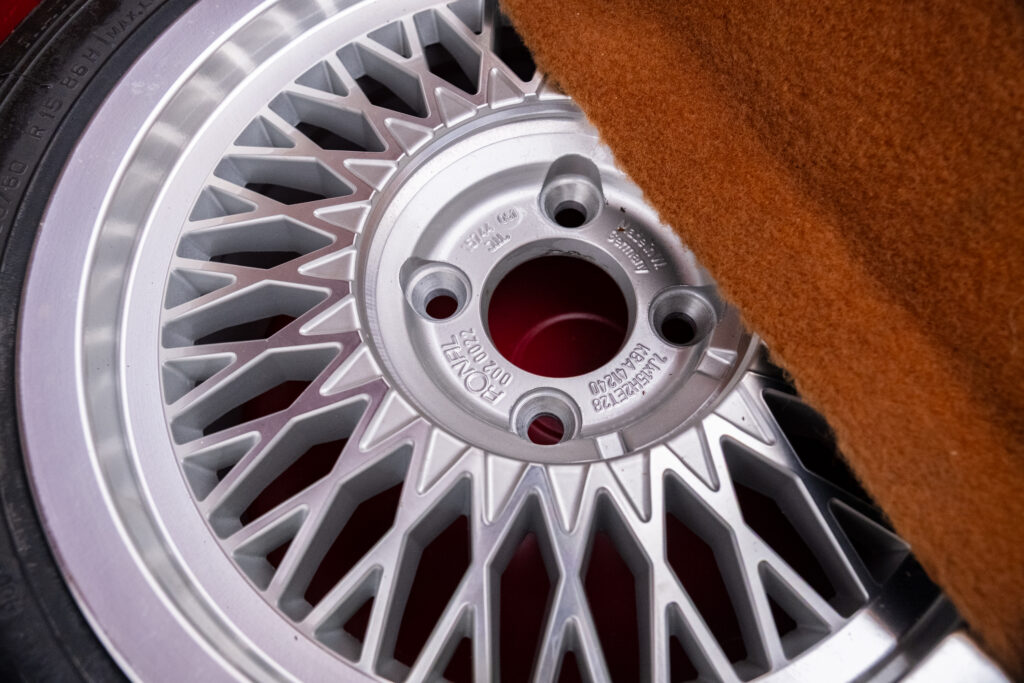 Deze wagen is uitgevoerd in het iconische Rosso Alfa 130 met een stijlvol beige interieur – een tijdloze en bijzonder elegante combinatie.