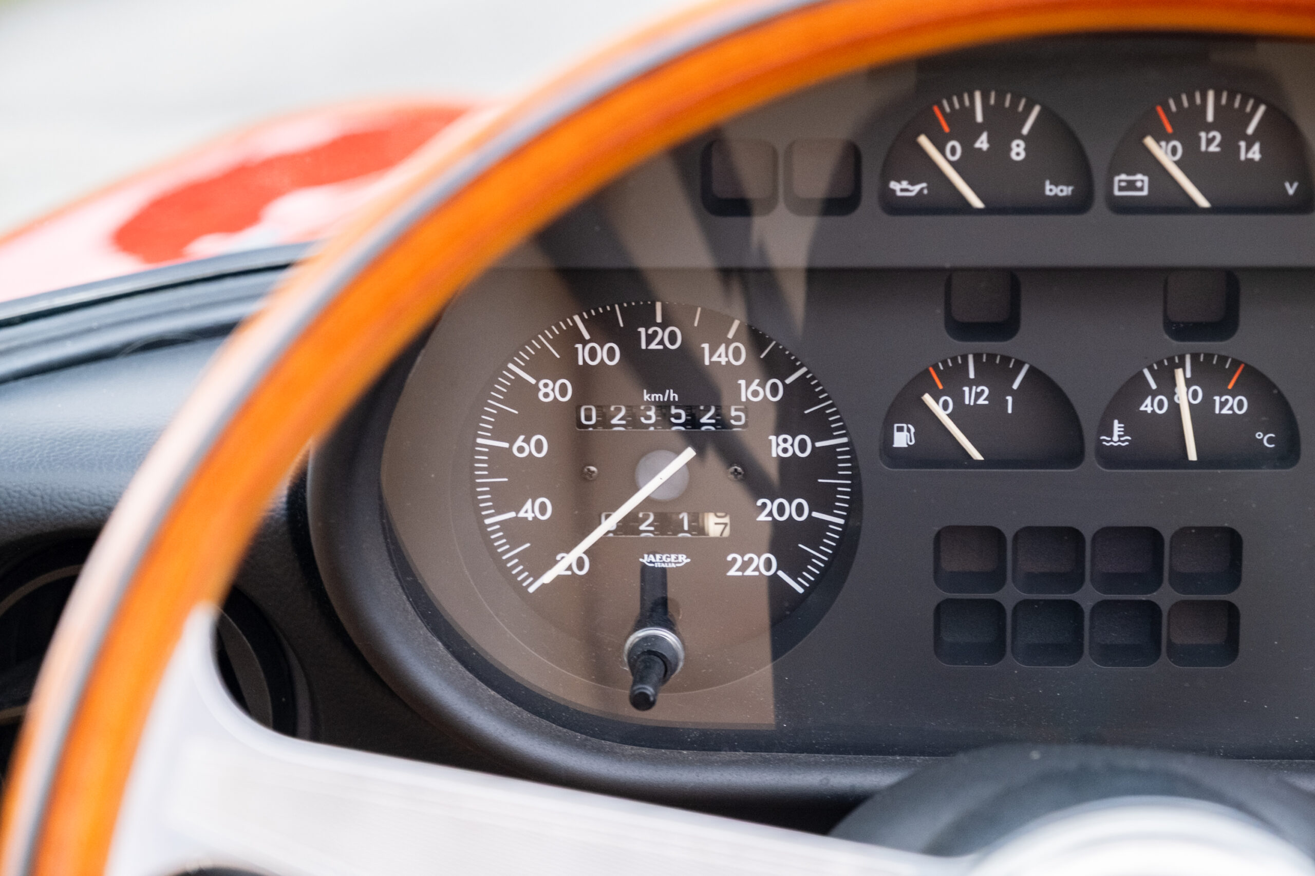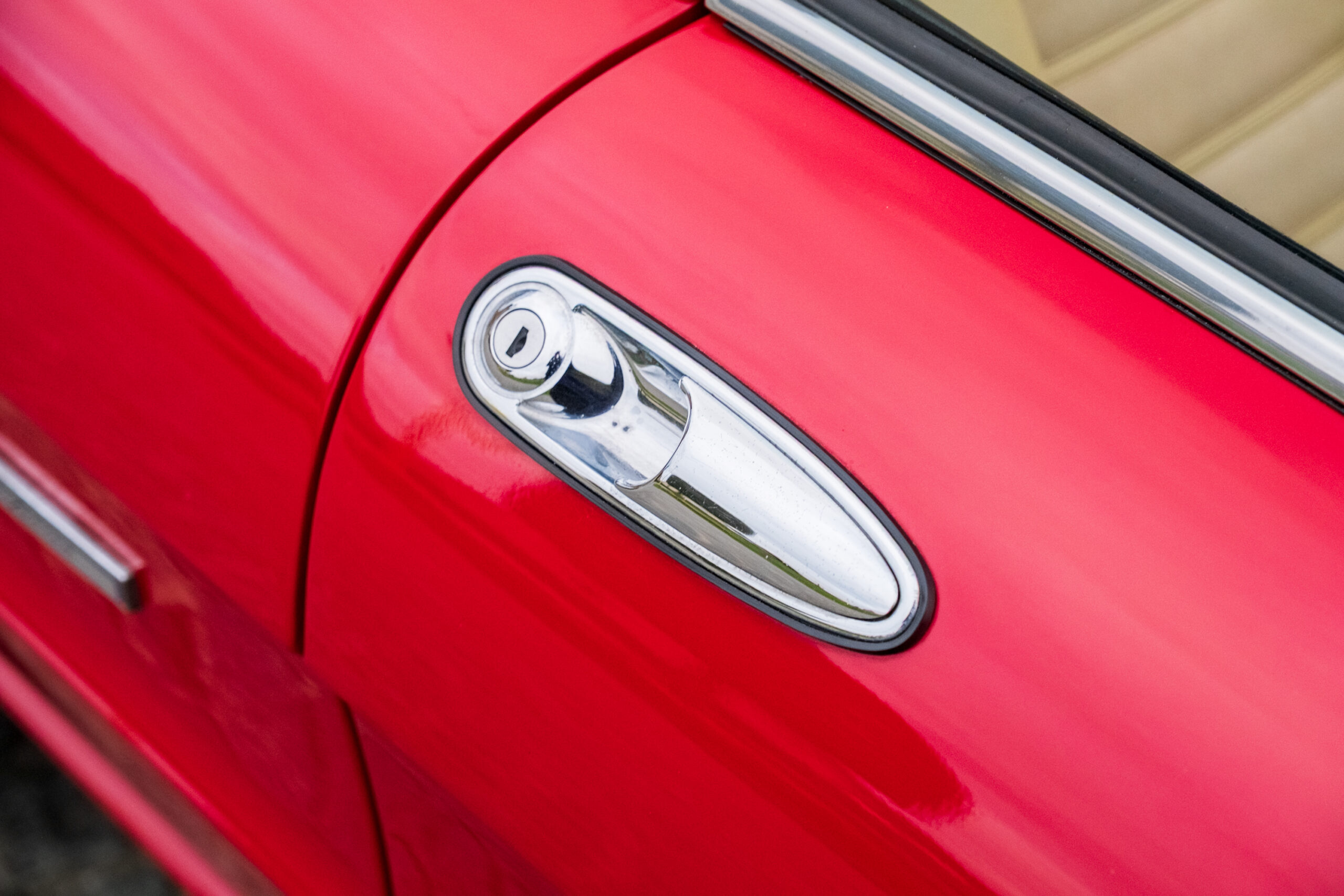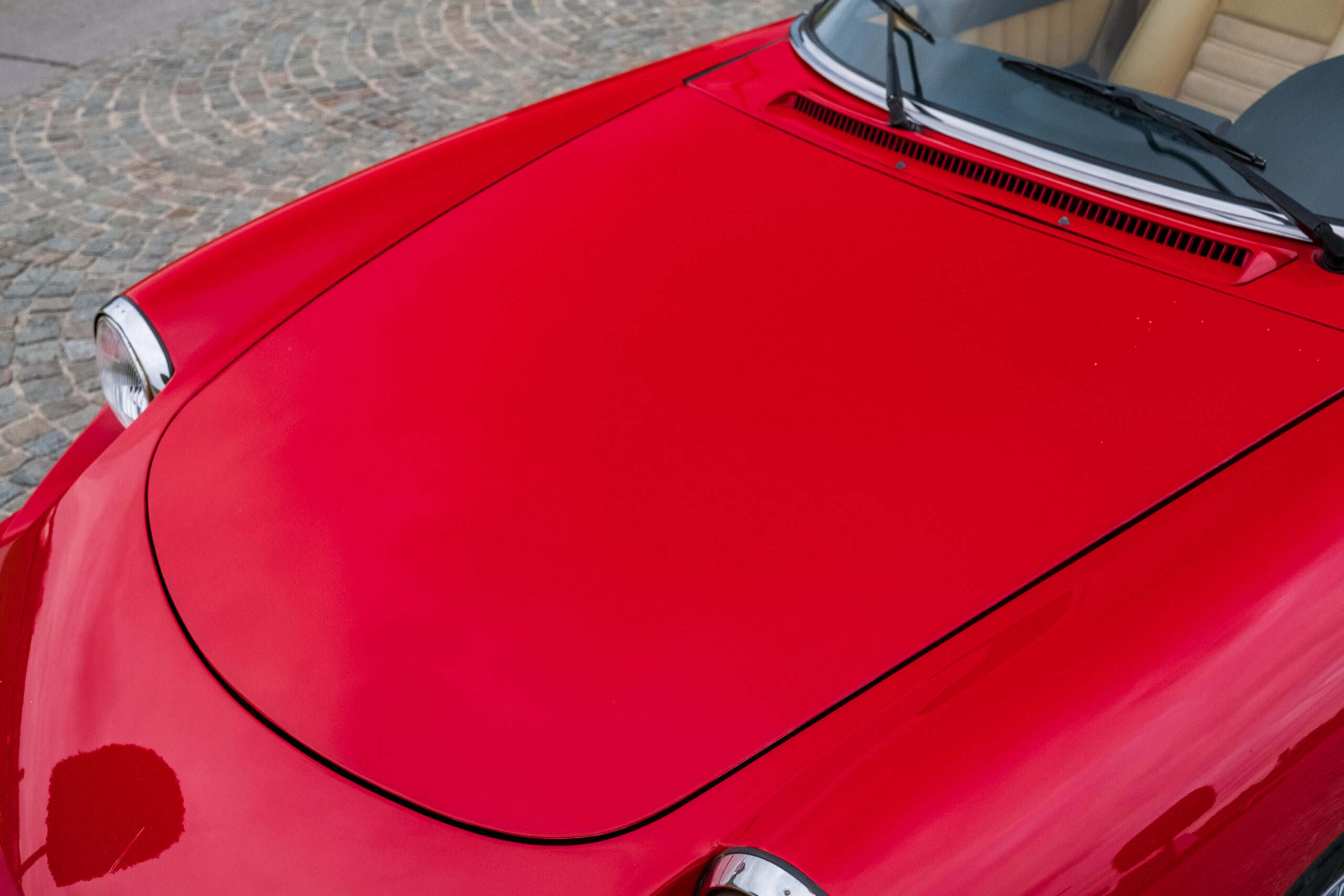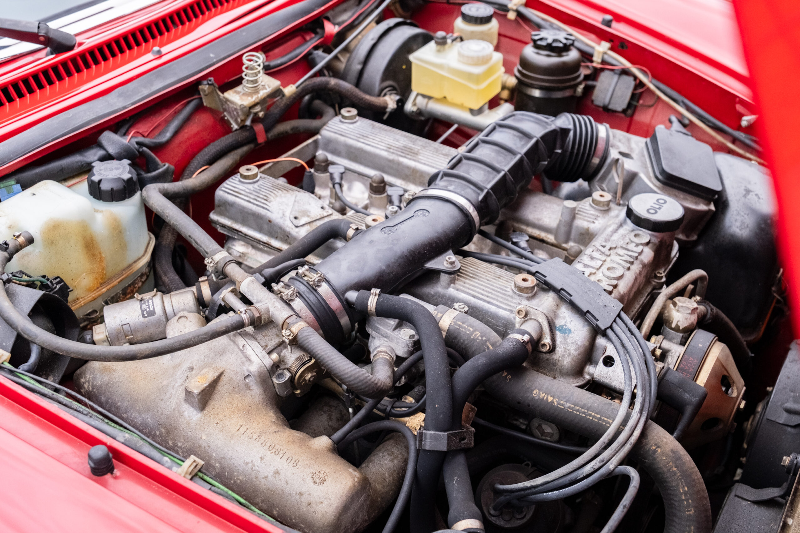 Deze wagen is uitgevoerd in het iconische Rosso Alfa 130 met een stijlvol beige interieur – een tijdloze en bijzonder elegante combinatie.