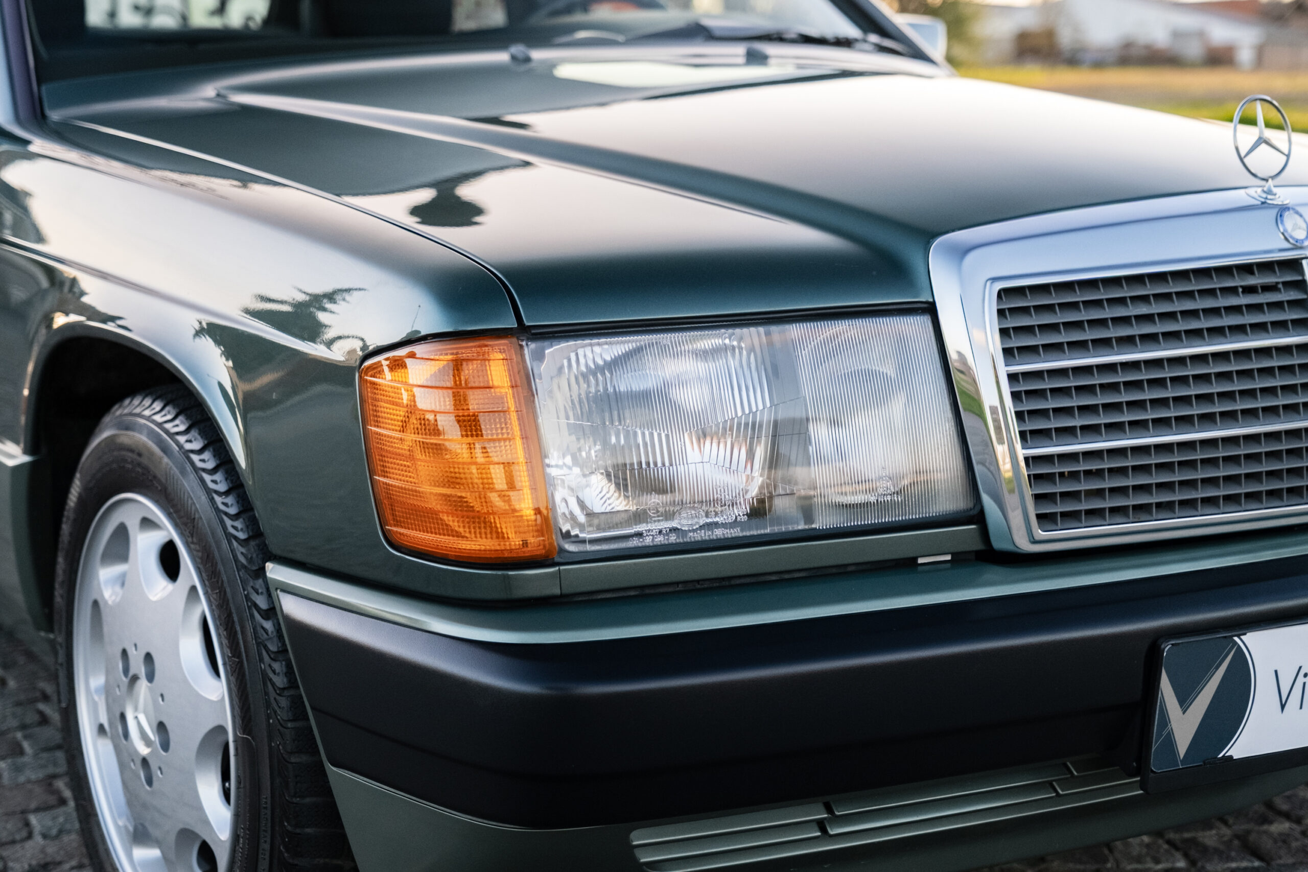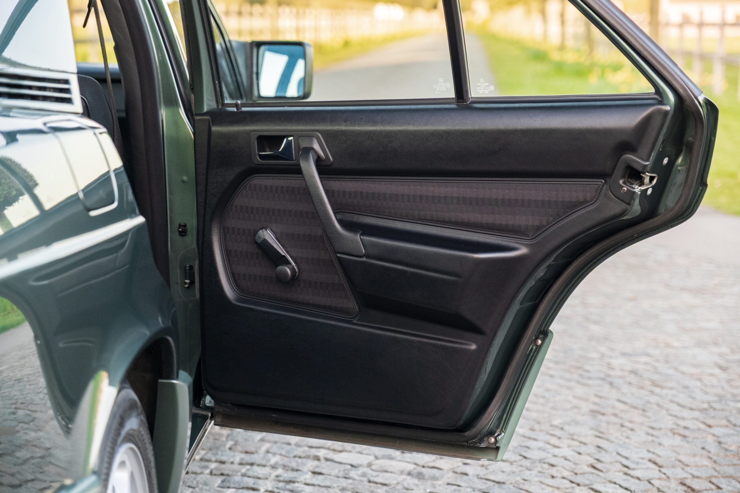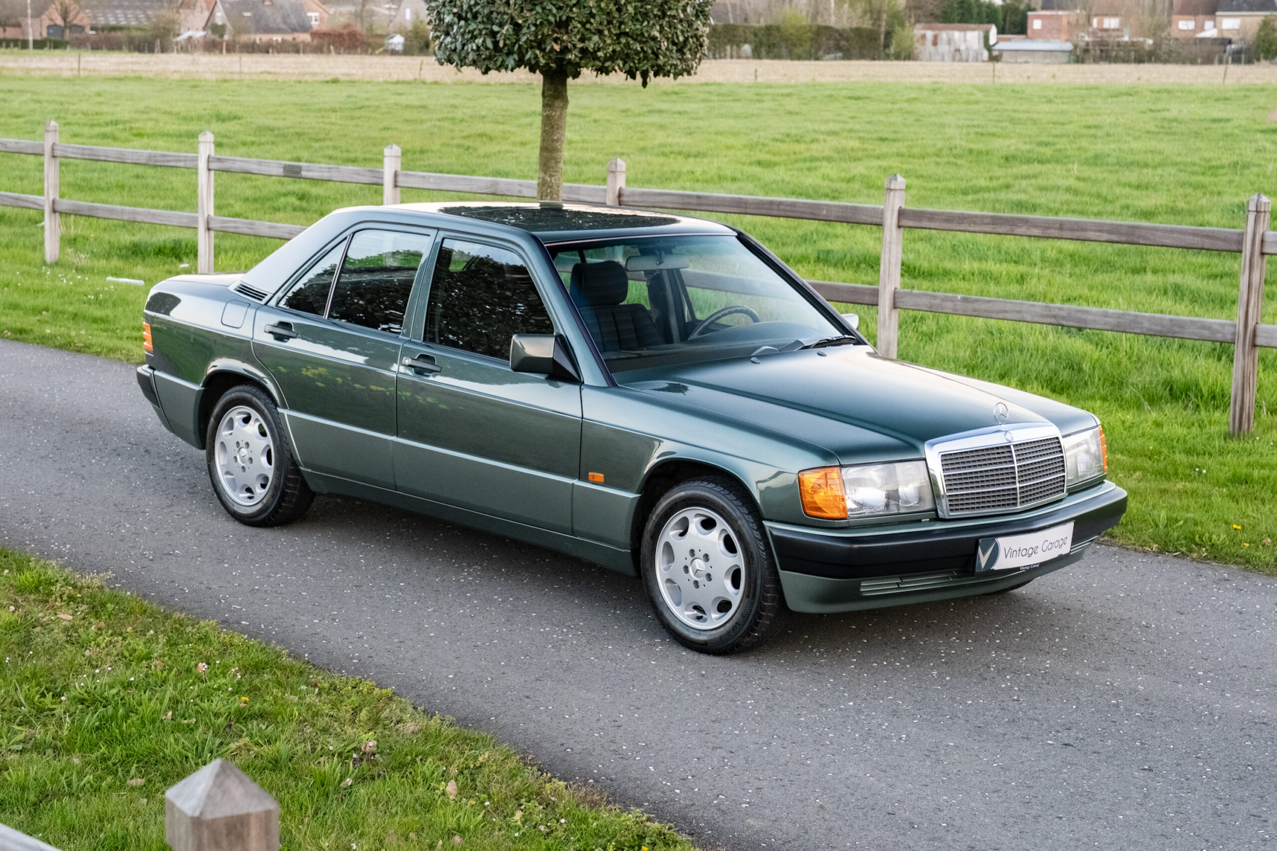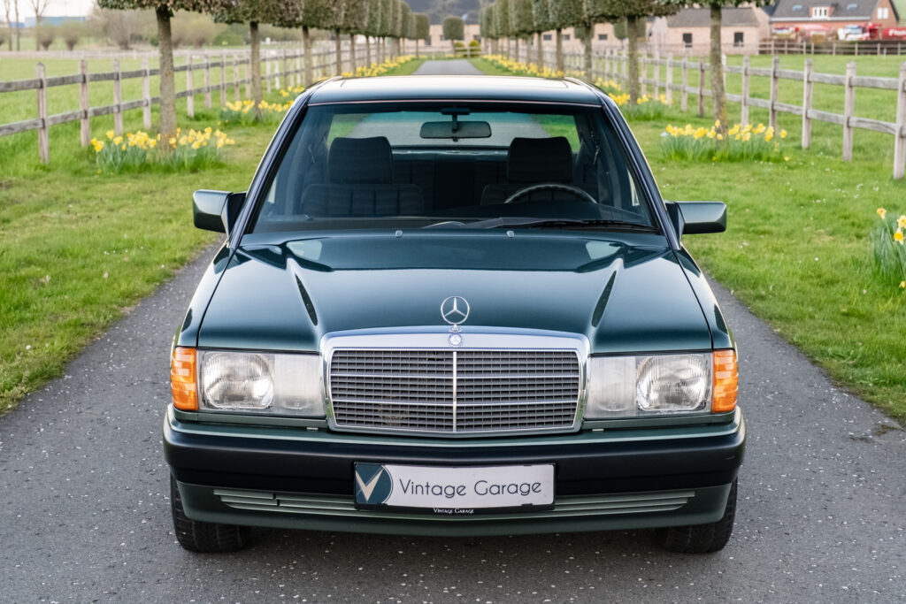 Te koop aangeboden: een uitzonderlijk mooie en bijzonder originele Mercedes-Benz 190E uit 1991, uitgevoerd in de zeldzame en elegante kleur Malachite Groen, gecombineerd met een stijlvol zwart stoffen interieur.