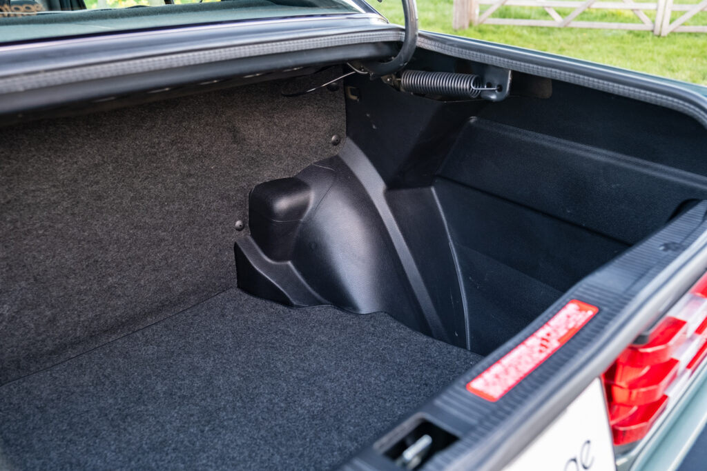 De kilometerstand van slechts 52.500 km is volledig origineel en aantoonbaar. Bovendien verkeert de wagen nog in een opmerkelijk authentieke conditie, met zelfs nog de originele fabrieksbeschermingswax zichtbaar op diverse onderdelen.