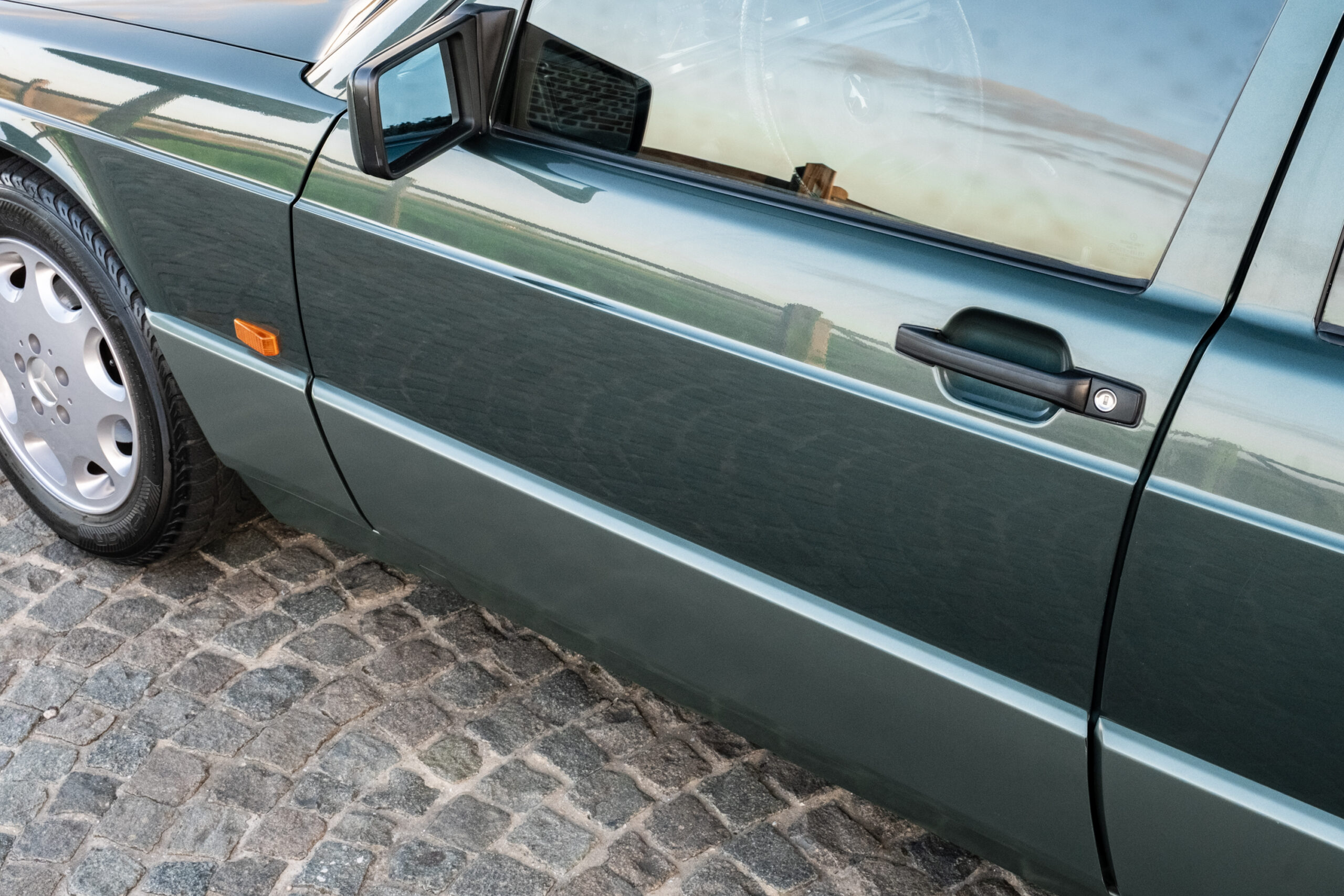 Wat deze 190E echt uniek maakt, is zijn uitzonderlijke staat. Zowel het exterieur, interieur als de mechaniek verkeren in quasi nieuwstaat. De wagen werd nieuw geleverd in Italië en heeft daar jarenlang genoten van een droog en mild klimaat. Dit vertaalt zich vandaag in een volledig roestvrije carrosserie — geen enkel spatje roest is aanwezig.